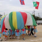 年中組は、大好きなミャクミャクの衣装を着て「この地球の続きを」の曲に合わせて、バルーンのお遊戯です。【2025 未来見に行こう!】 風の中での演技は、大変でしたが、バルーンを大きく膨らせることが出来ましたー。大成功★