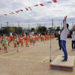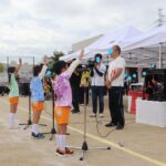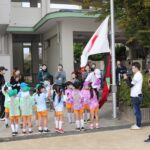 次は、開会式です。国旗と園旗を掲揚し、のの様に手を合わせます。