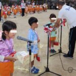 最後は、体操の先生と整理体操をして、閉会式では、園長先生から金メダルとお土産をもらいました。やったー!お土産は何かな~?